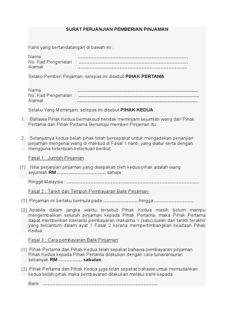 Surat Perjanjian Pemberian Pinjaman Pdf